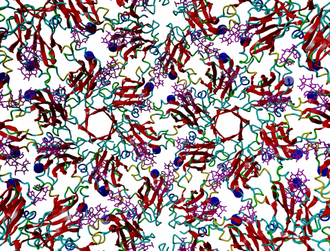 In the second plot we see CCMV as a ribbon-model, again from some 300 Ångstrøm distance.