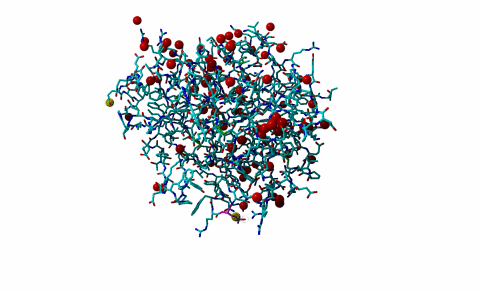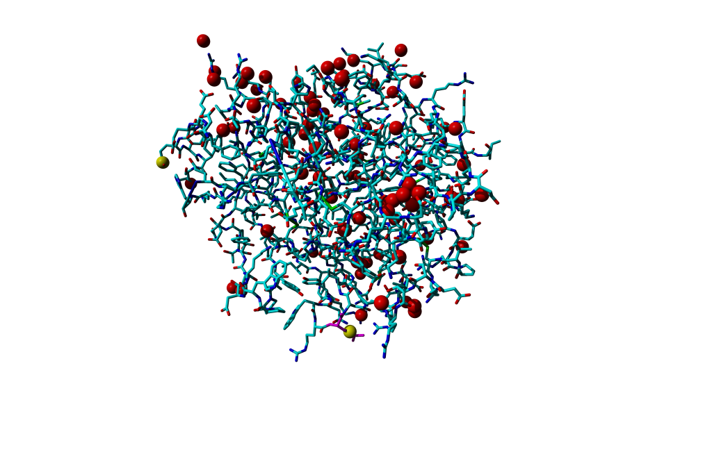 Waters with non-1.0 occupancy shown in a wireframe cell of 1QU9. |